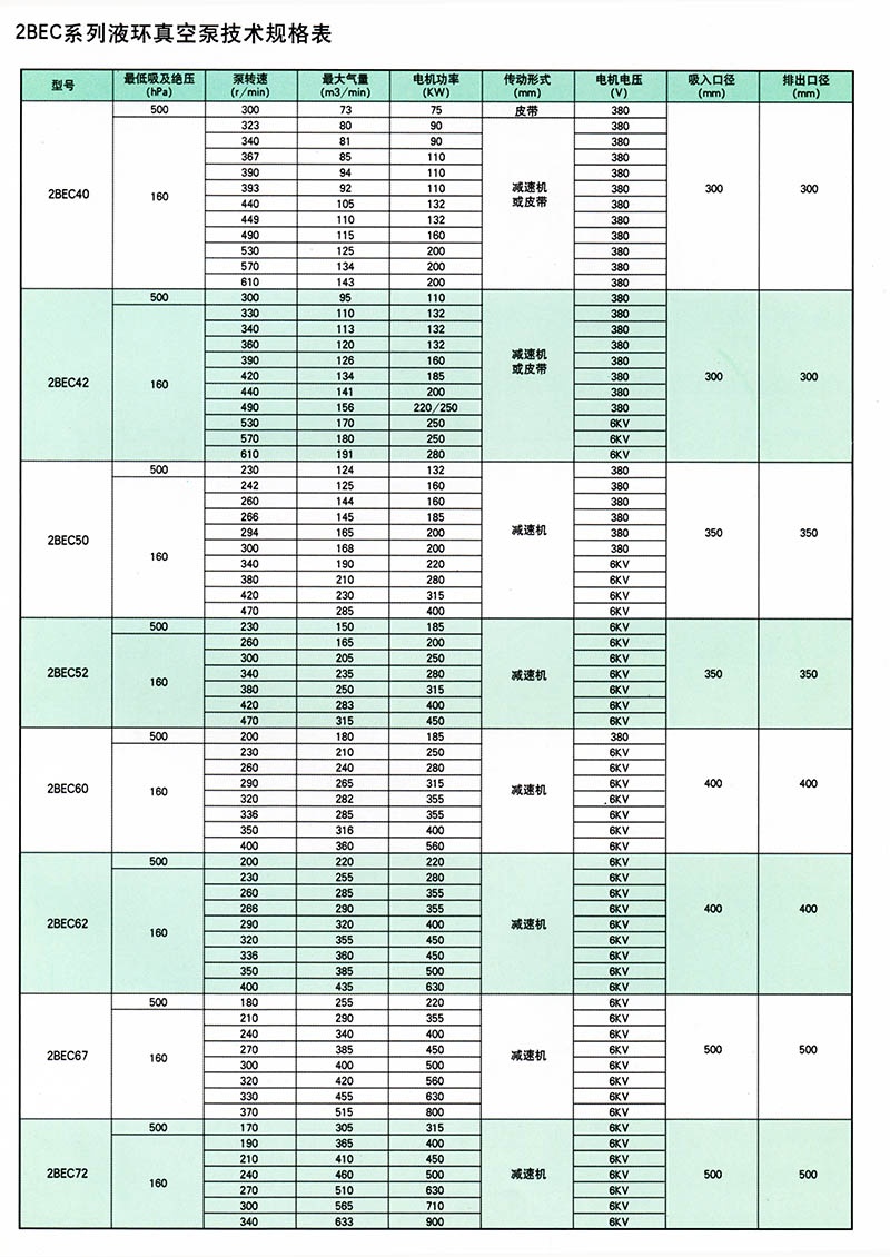 2BEC系列水環(huán)真空泵(瓦斯抽放泵),是我公司在多年科研成果和生產(chǎn)經(jīng)驗(yàn)的基礎(chǔ)上,結(jié)合國(guó)際同類產(chǎn)品先進(jìn)技術(shù),研制開發(fā)的高效節(jié)能產(chǎn)品,通常用于抽吸不含固體顆粒,不溶于水,無腐蝕性的氣體,以便在密閉容器中形成真空和壓力。通過改變結(jié)構(gòu)材料,亦可用于抽吸腐蝕氣體或以腐蝕液體做工作液。廣泛用于造紙、化工、石化、輕工、制藥、食品、建材、電器、洗煤、選礦、化肥等行業(yè)。在煤炭行業(yè)尤其可抽放高度易燃易爆氣體,如瓦斯、甲烷,可設(shè)計(jì)安裝地面瓦斯抽放站,可配套移動(dòng)瓦斯抽放系統(tǒng)。